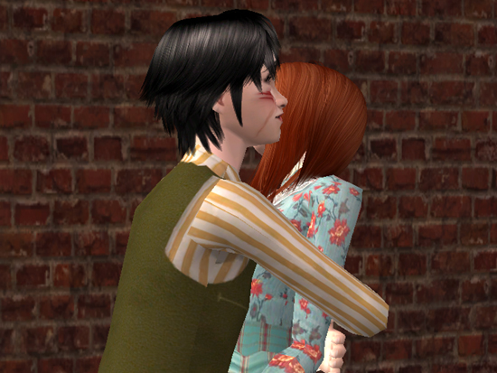 He pulls me into a tight embrace that leaves my head reeling--too much so to even hug him back, then he releases me, so fast I nearly stumble and melts back into the crowd, leaving me to stare after where he'd been the feeling of his arms still around me, and of his breath in my hair.