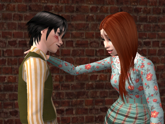 I hear the pain in his voice and I hate the fact that I caused it. I tentatively touch his shoulder, his breath hisses in, but he doesn't pull away from me. "I'm sorry--I-I..." I trail off, wondering why someone who is supposedly so cursedly good with words can't ever find the right ones when she needs them.